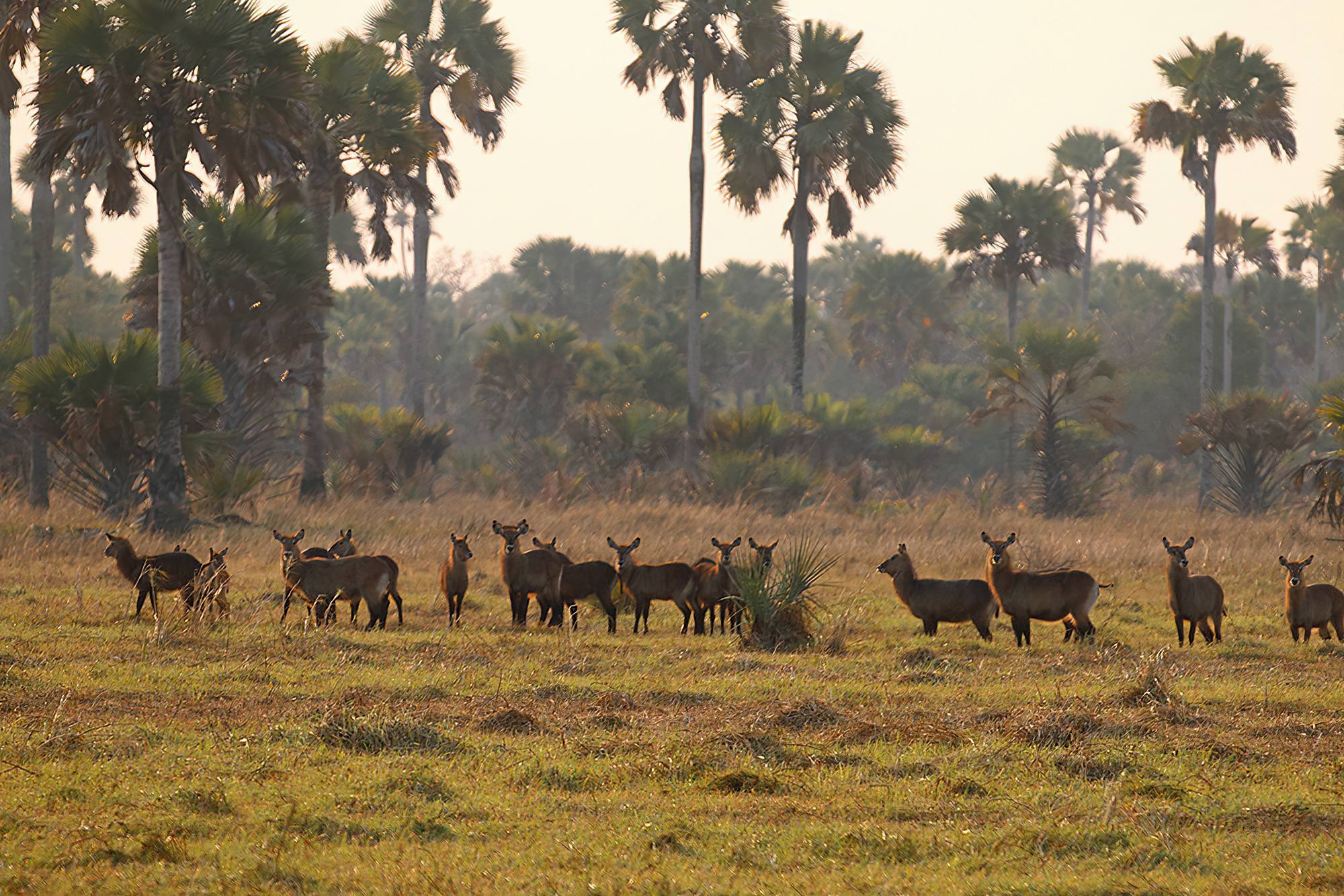 The park features vast, open savannah plains, dense riverine forests, and enormous seasonal floodplains. These floodplains fill with water during the rainy season, attracting one of Africa’s largest concentrations of hippos. Massive hippo pools become a bustling hub of wildlife activity, alongside crocodiles, waterbucks, and numerous bird species.