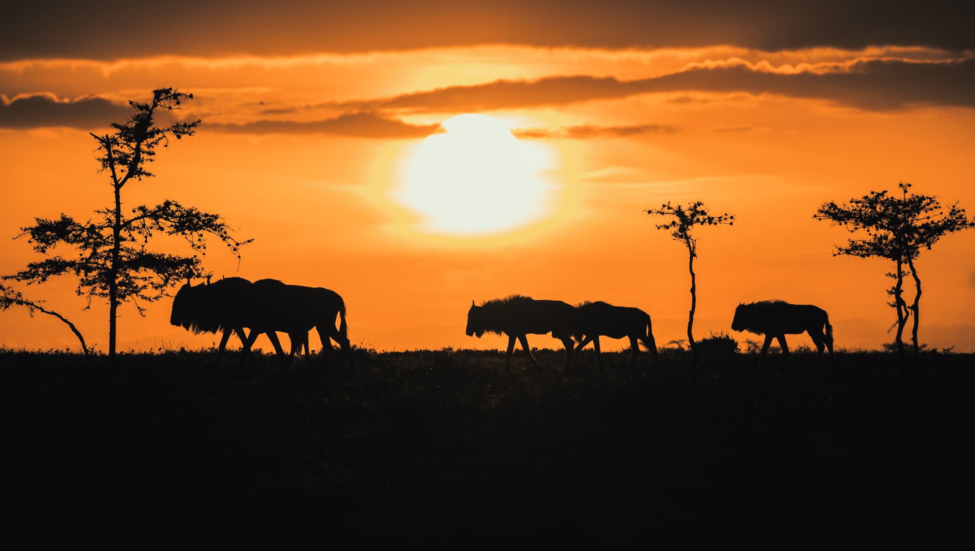 Start the day with an optional hot-air balloon flight over the Maasai Mara at sunrise, offering a unique aerial perspective of the Mara Triangle. This is one of the most photogenic experiences, allowing you to capture sweeping savannah landscapes, grazing herds, and predator interactions from above. After landing, enjoy a champagne breakfast in the bush, a perfect opportunity to photograph wildlife in natural morning light.