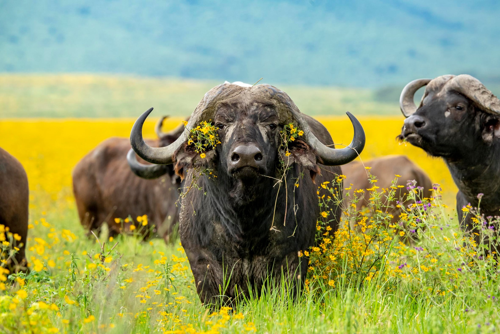 In the afternoon, continue your exploration of the crater. The soft golden light near sunset enhances textures on animal coats, highlights dust trails from moving herds, and creates perfect silhouettes against the crater rim.