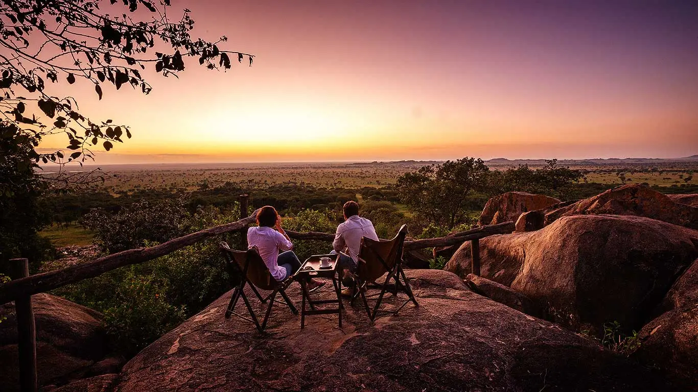 As the sun sets over the horizon, enjoy a classic sundowner with panoramic views of the Serengeti, followed by a gourmet dinner beneath the star-studded African sky.